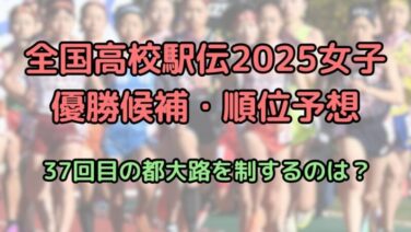 マラソン・駅伝全国高校駅伝女子2025優勝候補と順位予想!出場校と見どころも解説! 冬の都大路を舞台に繰り広げられる全国高校駅伝。 女子の部では、全国の強豪校がチーム一丸となって栄冠を争います。 2025年大会も実力拮抗。区間ごとに白熱したデッドヒートが展開されること間違いありません。今年の都大路を制するのはどのチームか?... 2025.10.17マラソン・駅伝駅伝高校駅伝